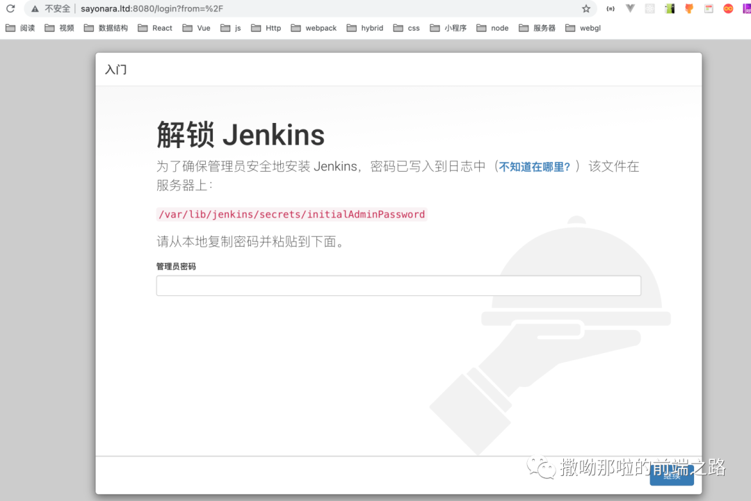 然后通过cat /var/lib/jenkins/secrets/initialAdminPassword来查看密码进行初始化jenkins