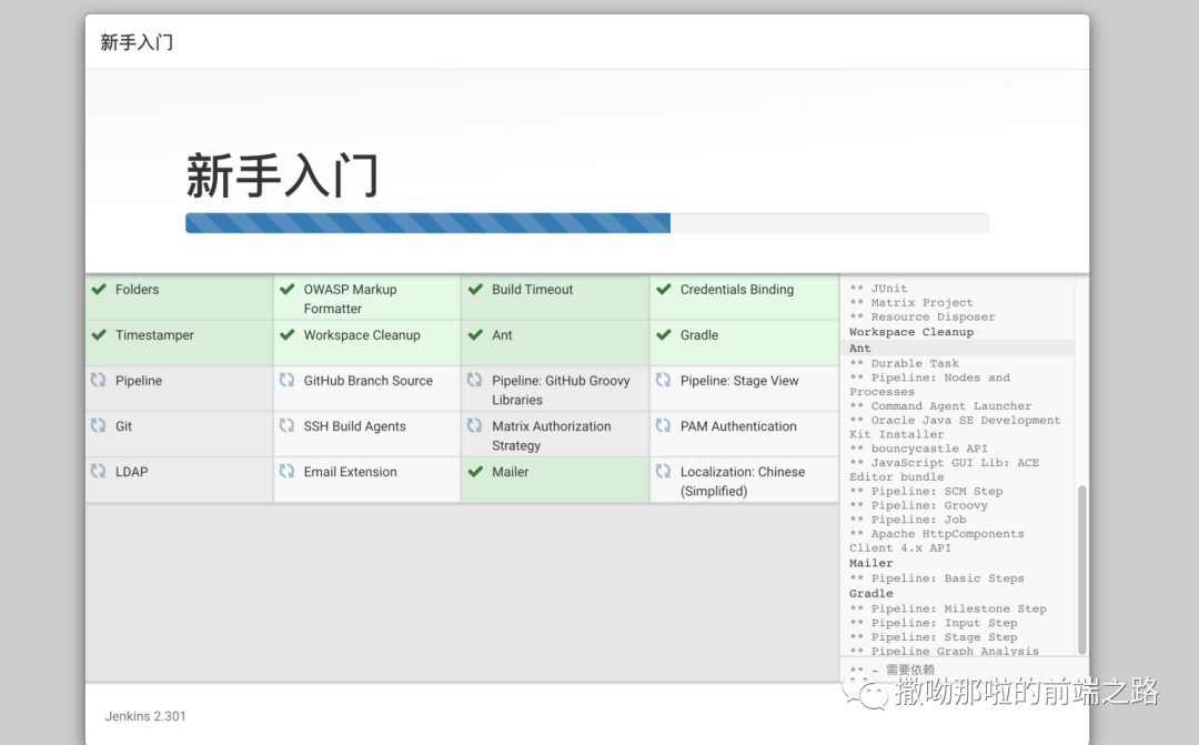 方法2vim /var/lib/jenkins/config.xml直接修改代码<useSecurity>true</useSecurity>改成<useSecurity>false</useSecurity>然后把下面这段删掉<authorizationStrategy class="hudson.security.FullControlOnceLoggedInAuthorizationStrategy"><denyAnonymousReadAccess>true</denyAnonymousReadAccess></authorizationStrategy><securityRealm class="hudson.security.HudsonPrivateSecurityRealm"><disableSignup>true</disableSignup><enableCaptcha>false</enableCaptcha></securityRealm>然后重启就可以了systemctl restart jenkins再次进行安装推荐的插件