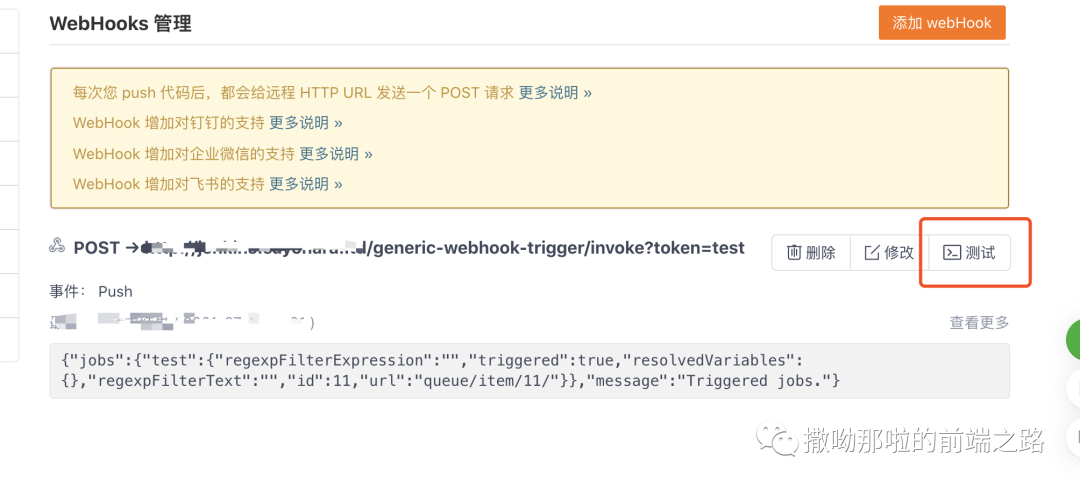配置gitee的webhooks,实现上传代码通知自己的jenkins自动打包