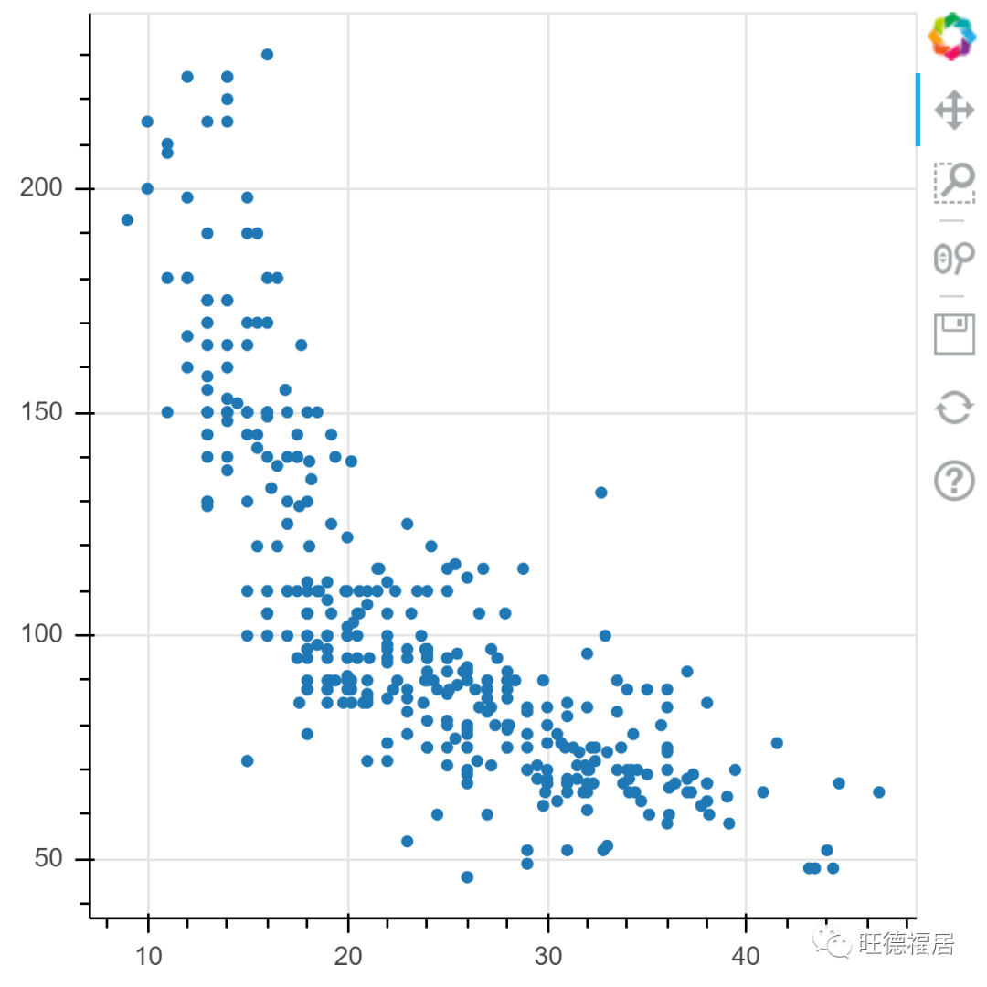练习: 使用 autompg 样例数据创建一个列数据源并画图
