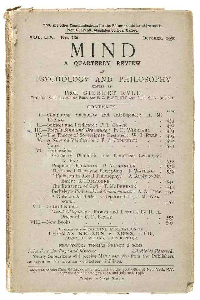 直至1950年,他那篇著名论文《计算机机械与智能》的正式发表,里面有史以来第一次提出了“人工智能”的概念,以及同样广为人知的“模仿游戏”以及“图灵测试”。