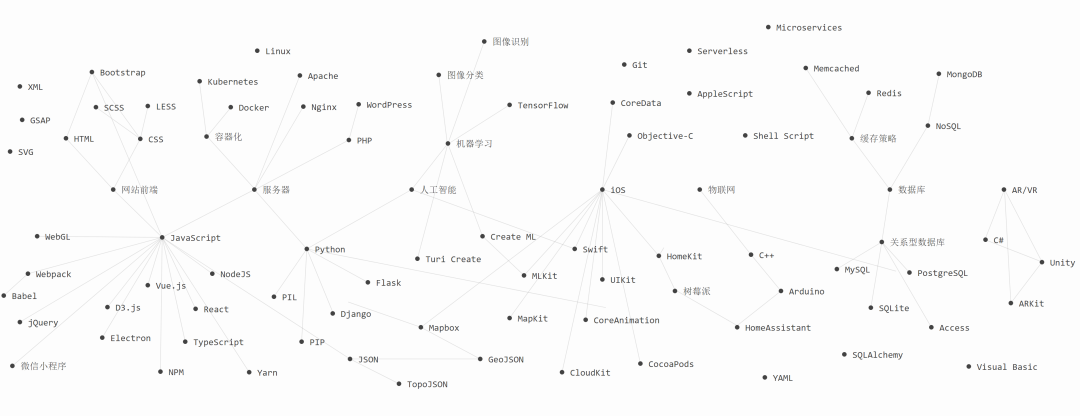 在编程方面,他没有接受过系统的教育。“开始时自己先在网上找相关教程,基础知识过关后就大量实践,自己给自己‘出难题’,或者研究一些别人的作品举一反三,遇到不懂的问题就Google一下,基本上都能找得到想要的答案。”下面是翁天信自学过的编程技术。真的非常非常丰富!