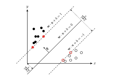 从直观来看,最佳超平面可以让两类样本中的点到这条直线的最短距离最大,由于在实际中决定超平面的往往是靠近这个边界的几个点,我们称之为支持向量。SVM学习算法找到导致超平面最好地分离类的系数。