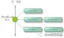 当然,这个例子本身很粗糙,将Connection的ThreadLocal直接放在DAO只能做到本DAO的多个方法共享Connection时不发生线程安全问题,但无法和其它DAO共用同一个Connection,要做到同一事务多DAO共享同一Connection,必须在一个共同的外部类使用ThreadLocal保存Connection。