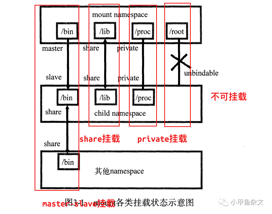 mount既可以挂载进程,也可以挂载文件系统, 使在docker中只能看到自己docker中文件.下图是mount文件系统常用的挂载方式