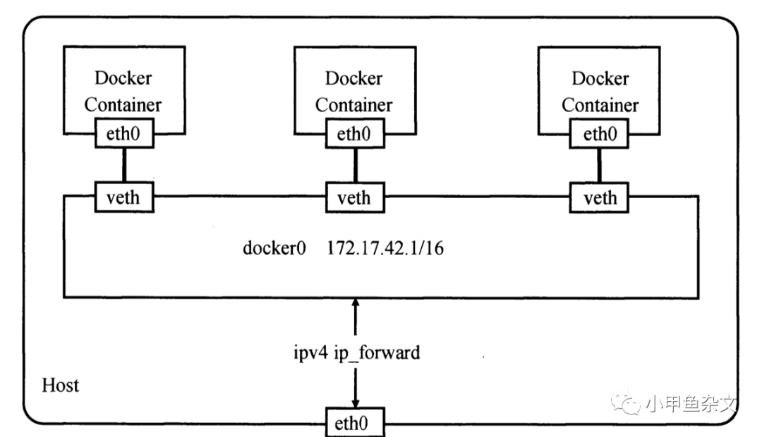 下面的eth0为宿主机物理网卡,当docker-daemon进程创建后,会创建一个docker0,