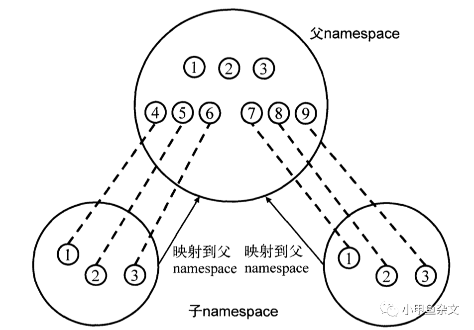 假设上图中1为 init进程, 在父namespace下, 这个进程可能是普通进程(4、7)但是到了子namespace下就变成了超级进程(1-init)