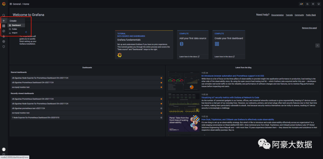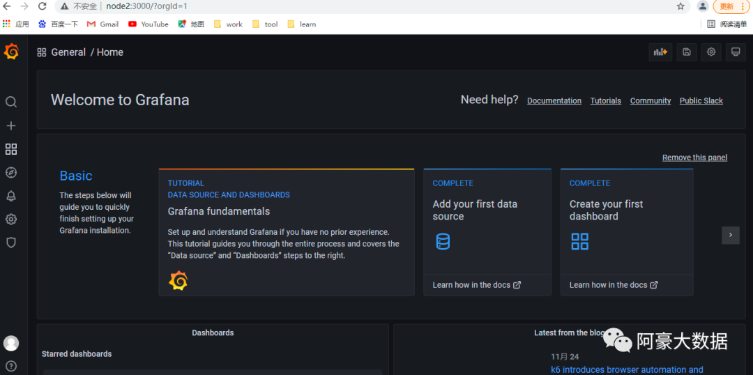 #登录:node2:3000,首次登录账号密码为:admin/admin
