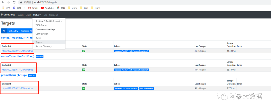 #4.登录:node2:9090 查看确认prometheus是否正常启动