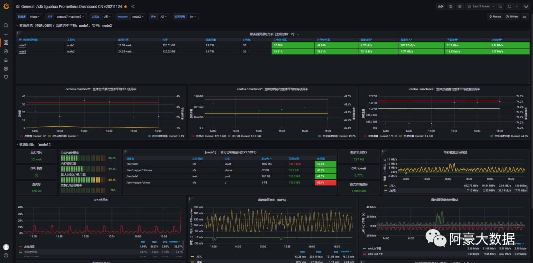 两台机器的CPU,IO等系统资源使用情况,我该如何使用Prometheus+Grafana实现呢?