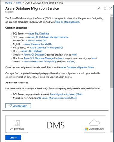 Azure DMS 支持迁移到 Azure SQL 数据库的所有服务选项(单库、弹性池和托管实例)以及 Azure IaaS 虚拟机上的SQL Server。