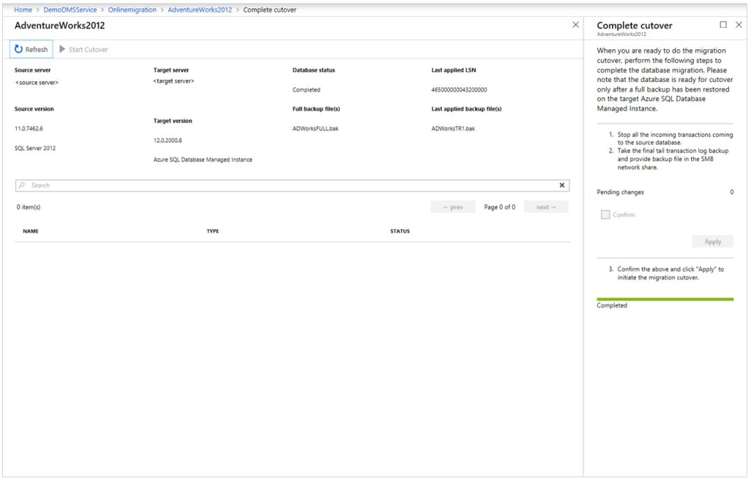 最后,检验数据,并将应用指向新的托管实例。由于云瞬息万变的本质,请查看下面的资源部分中提到的 Microsoft 文档和 Microsoft 团队博客,了解迁移工具和最佳实践的变化,因为 Microsoft 每个月都会推出新的方法或支持的配置。