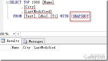 当表创建好之后,就可以查询数据了,值得注意的是,查询内存优化表需要 snapshot 隔离等级或者 hint,这个隔离等级与快照隔离是不同的,如图6所示。