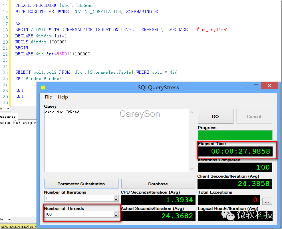 因此不难看出,内存优化表+本地编译存储过程有接近几十倍的性能提升。