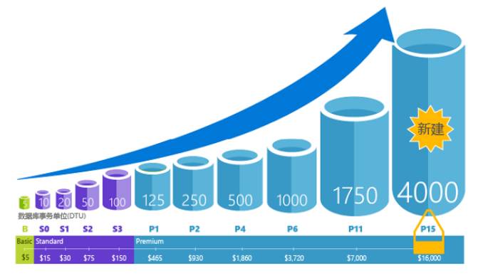 Azure SQL使用了数据库事务单位(DTU)和弹性数据库事务单位(eDTU)来作为一个计量单位。