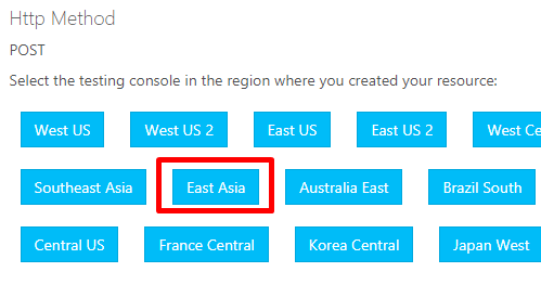 在页面中间选择 East Asia,即之前创建 Computer Vision资源的地区。