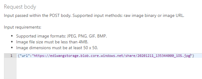 在页面下方的 Request body 里填写一个猫猫照片的URL,注意图片大小不能超过4MB。