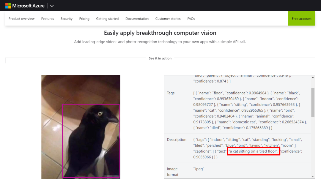 在编写应用之前,我们可以使用微软提供的测试平台试试 Computer Vision API 到底能不能识别猫猫。