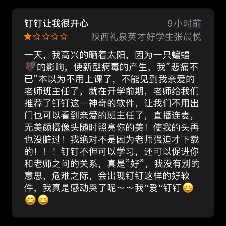 万万没有想到,钉钉居然被一群小学生组团打了一星。
