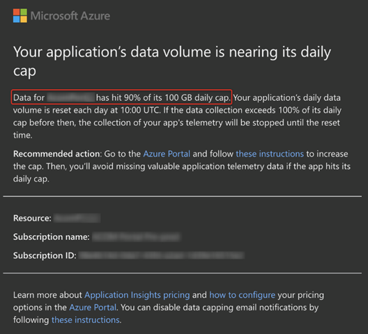 https://docs.microsoft.com/en-us/azure/azure-monitor/app/pricing#create-alerts-for-the-daily-cap