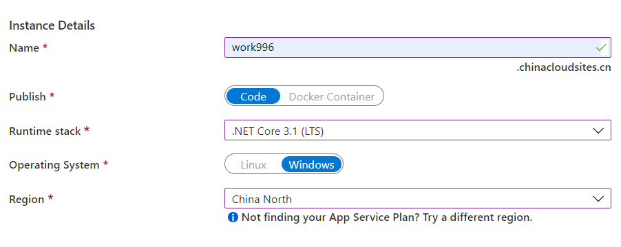 列表内已经在国内落地的服务,和国际版上也是有差别的。为了避免不必要的麻烦,只举一例,中国版和国际版 Azure 都有 Web App,界面虽然长得一样,但中国版点不了 Linux 及 Docker Container: