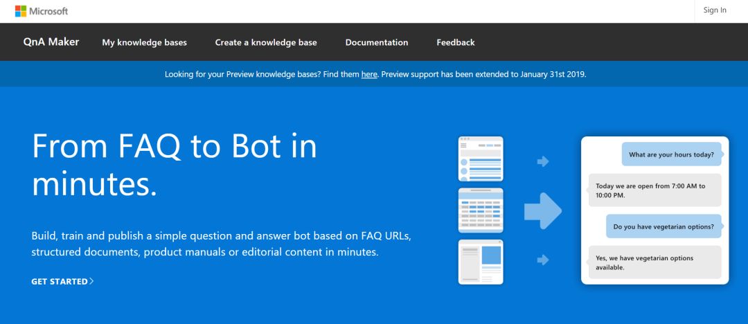 微软Azure的目标是让人工智能(Artificial Intelligence, AI)平民化,即让开发者在无需了解AI原理、算法和模型训练等复杂细节的前提下,就能够便捷的享用AI服务。Azure上的 “QnA Maker” 则对Bot Framework进行一站式包装,让开发者能够根据公司已有的FAQ数据,在短短几分钟内,生成一个完整可用的FAQ聊天机器人。整个过程中,我们没有自己选择及编写算法,也没有自己进行模型训练与API编写,更没有自建数据索引,甚至连工程代码都是Azure全自动完成,智能水平让人震惊到合不拢嘴!