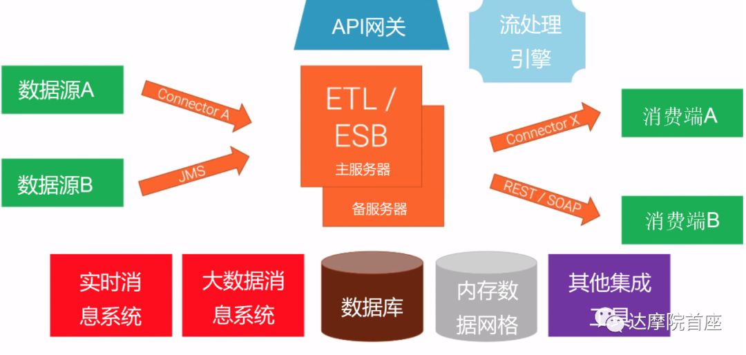 集成化平台(ETL/ESB)加上额外的“可选”组件;