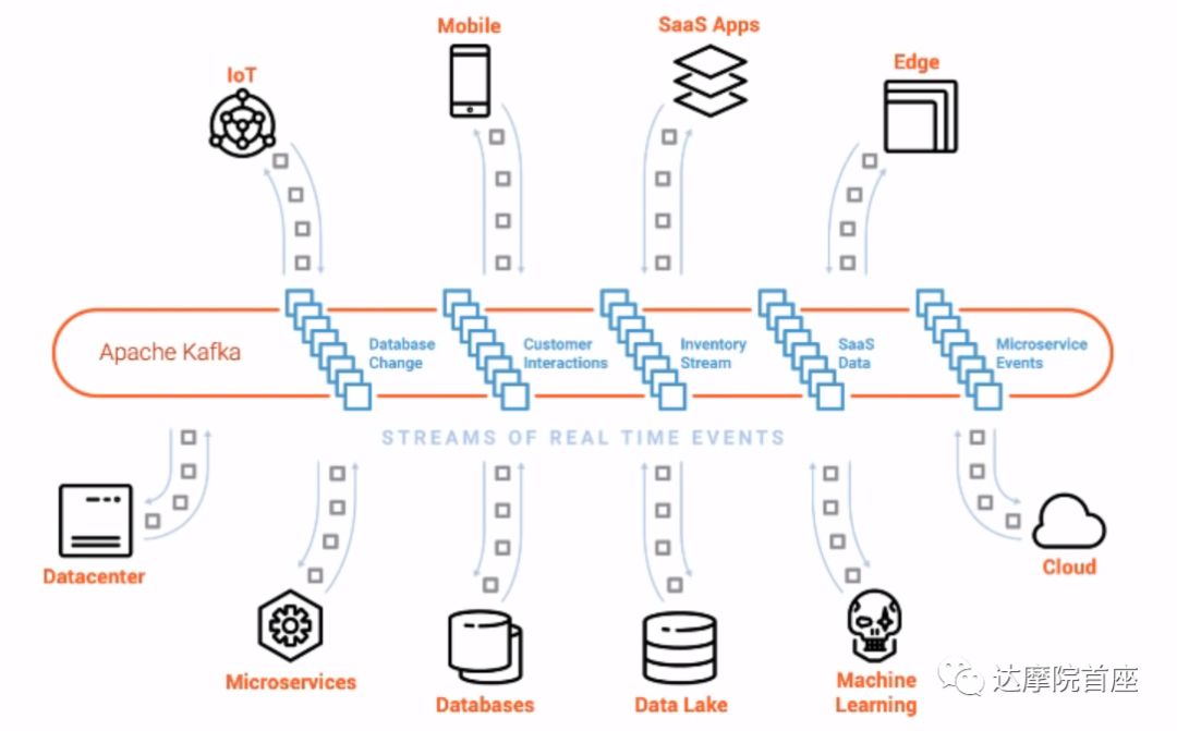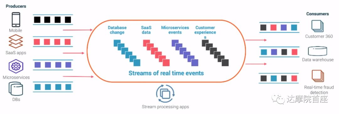 Apache Kafka就是这样一个实时事件处理平台,可以将各类应用的事务流按照主题分类并分发给对应的订阅者/消费者。它的吞吐量也是受到广泛验证的,比如其创始公司领英的每日消息处理量超过4,500,000,000,000条,Netflix日均处理量在6PB以上。