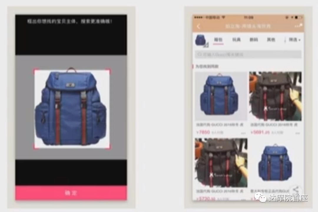 阿里通过大量数据建立起来的模型算法,准确匹配到近似的图像,并将搜索结果返回给用户。