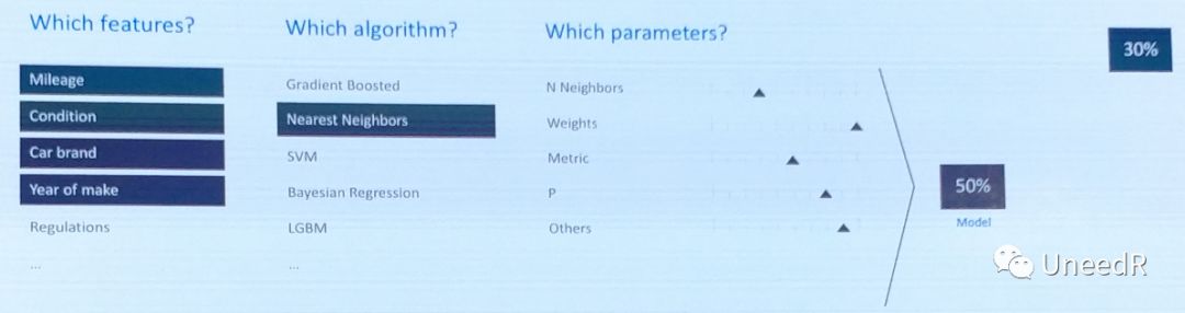 回过头来说说机器学习,它其实是一个对输入参数、算法选择和参数不断进行最优调试的过程。比如说我们对猫的种类通过图像识别来进行归类训练,输入的参数(或从图像识别到的参数)有:猫的发色、发量、体型、瞳距等等;