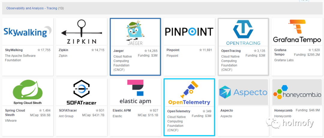 在2016年11月的时候CNCF技术委员会投票接受OpenTracing作为Hosted项目,这是CNCF的第三个项目,第一个是Kubernetes,第二个是Prometheus,可见CNCF对OpenTracing背后可观察性的重视。大名鼎鼎的Zipkin、Jaeger也都开始遵循OpenTracing协议。