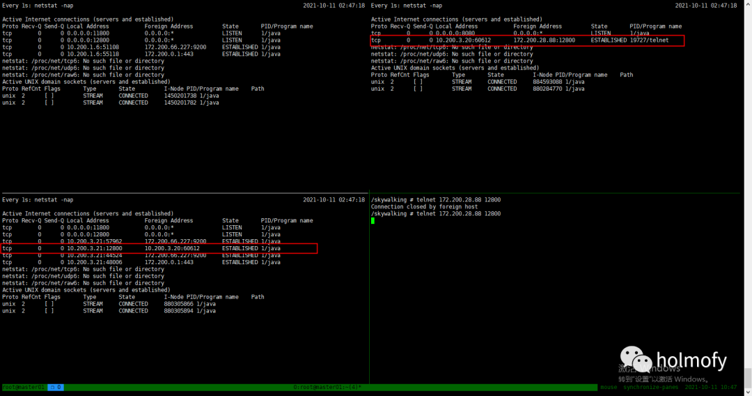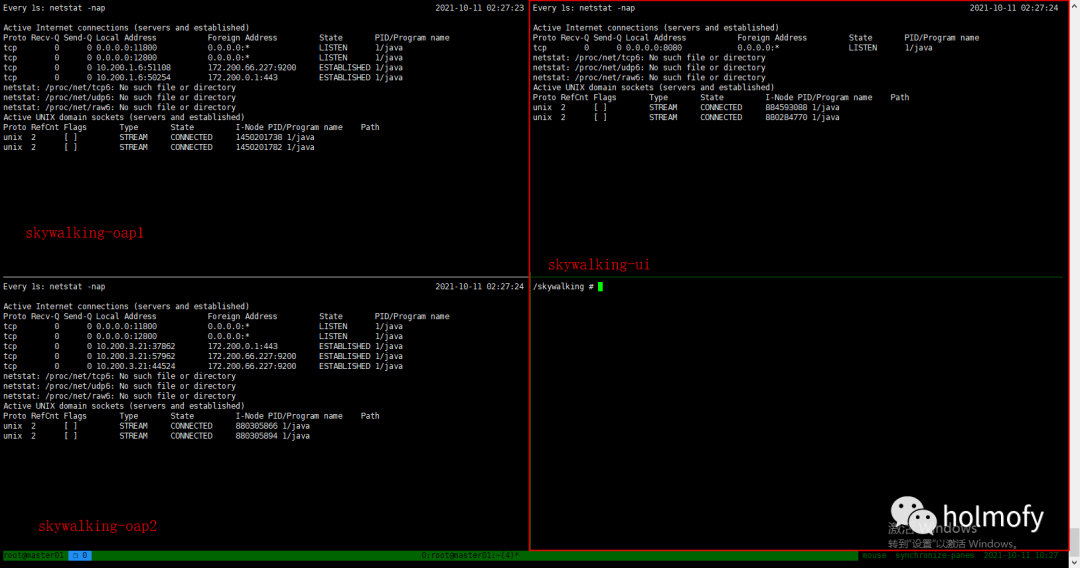 从下图可以看到,skywalking提供了11800和12800的监听端口,以及连接ElasticSearch的9200端口