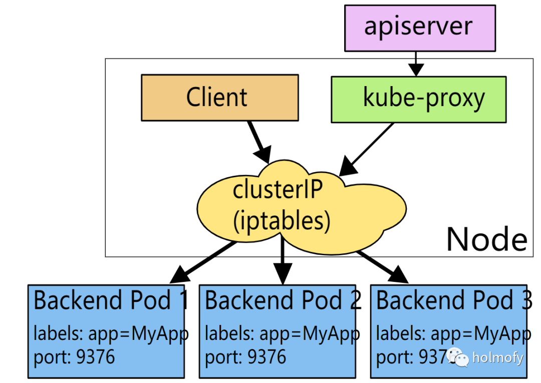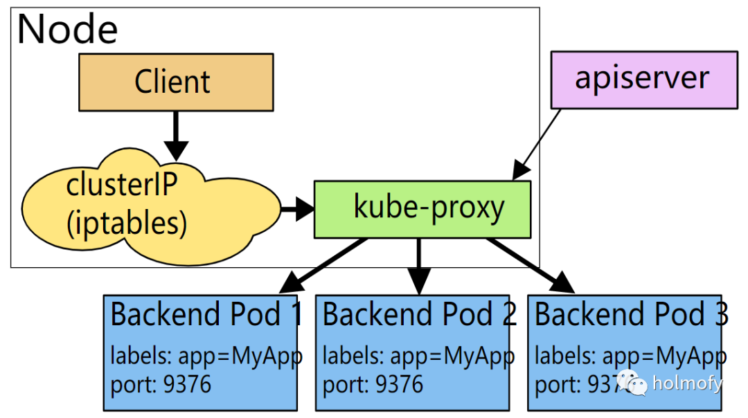 和端口的请求,进而将请求重定向到 Service 的后端中的某个 Pod 上面。对于每个 Endpoints 对象,它也会配置 iptables 规则,这个规则会选择一个后端Pod。
