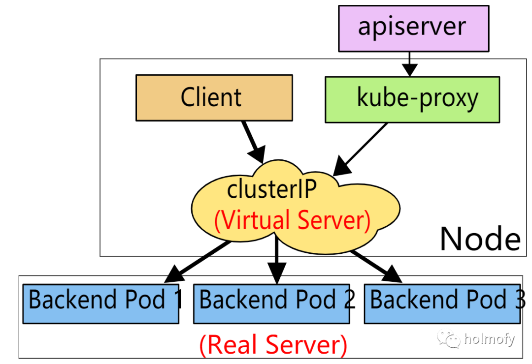 在这些代理模型中,绑定到服务 IP 的流量:在客户端不了解 Kubernetes 或服务或 Pod 的任何信息的情况下,将 Port 代理到适当的后端。