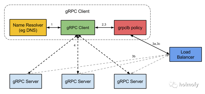 原生grpc就没有服务发现这个概念,而是使用另外的LoaderBalancer组件实现负载均衡。