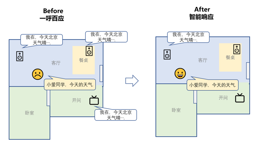 协同唤醒是小爱多设备用户唤醒的基础功能,在手机、音箱、电视、大家电等多个智能设备周围说「小爱同学」时,小爱将智能选择一台合适的设备应答和倾听,避免一呼百应。