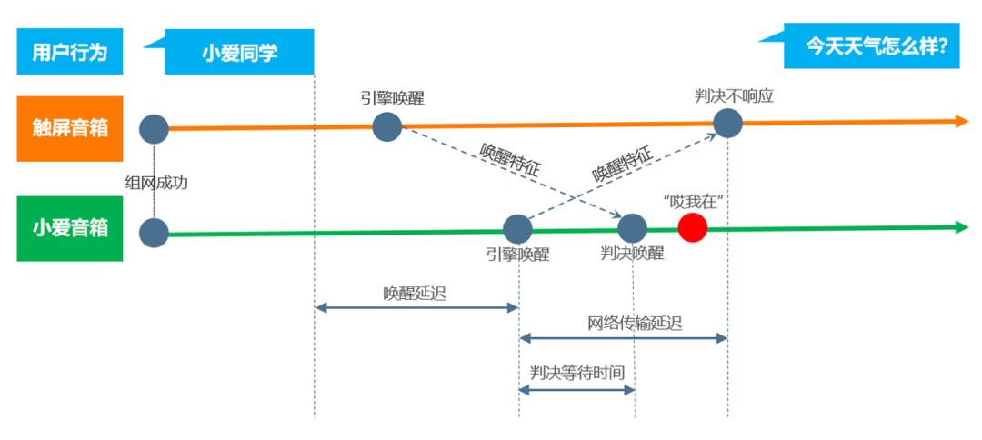 线上质量管控困难:线上质量指标主要是指协同唤醒失灵,发生同时唤醒的概率。根据协同唤醒原理,当唤醒特征消息传输延迟大或不同设备唤醒延迟差异大时,会导致判决等待时间内无法收全全局的信息,引起不同设备判决结果不一致,发生同时唤醒。判决等待时间的设定会影响同时唤醒率与设备应答速度,当判决等待时间过长,设备应答速度变慢,判决等待时间过短,同时唤醒概率升高。