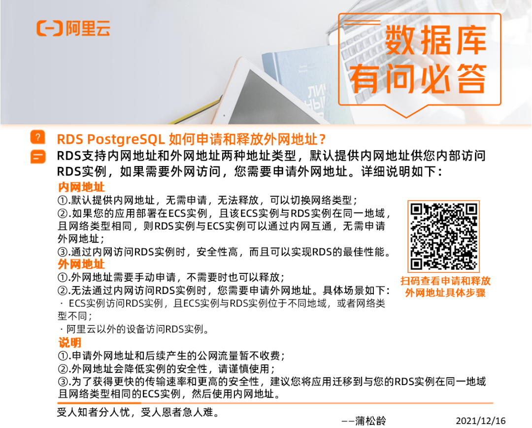 Q: RDS PostgreSQL 如何申请和释放外网地址?