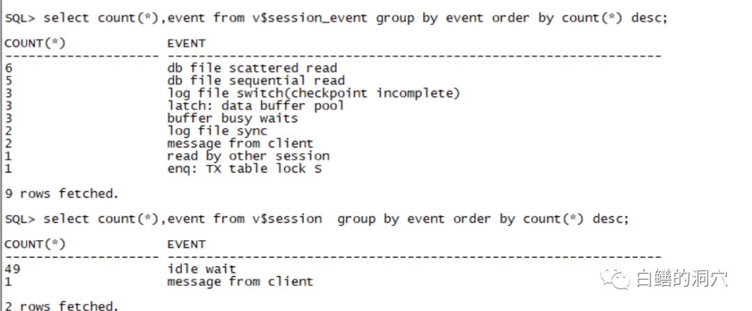 我们使用高斯100的等待事件可以通过三种方法,第一种方法是实时监控高斯100会话的等待事件情况,这个与我们在Oracle中监控v$session的情况类似,不过要注意的是,高斯100的等待事件接口可能还存在不完善的情况,v$session中虽然也有event的信息,但是v$session和v$session_event中的等待事件不太一致。从老白亲自分析的情况看,v$session_event中的数据更为准确。
