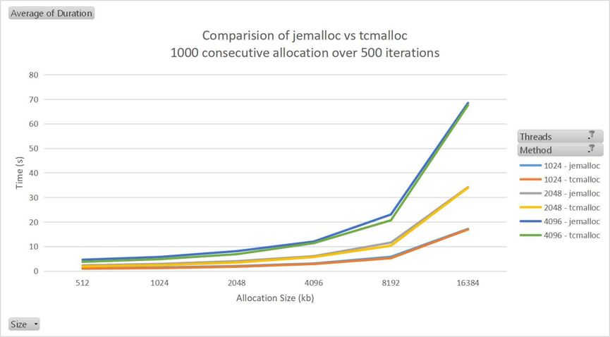 Originally developed by Jason Evans in 2005, jemalloc has since been adopted by FreeBSD, Facebook, Mozilla Firefox, MariaDB, Android and etc. jemalloc is a general purpose malloc(3) implementation that emphasizes fragmentation avoidance and scalable concurrency support. In order to avoid lock contention, jemalloc uses separate memory pool “arenas” for each CPU, and threads are assigned to an arena to handle malloc requests.