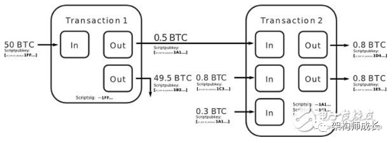 2、任何一笔交易的交易输入总量必须等于交易输出总量,等式两边必须配平。