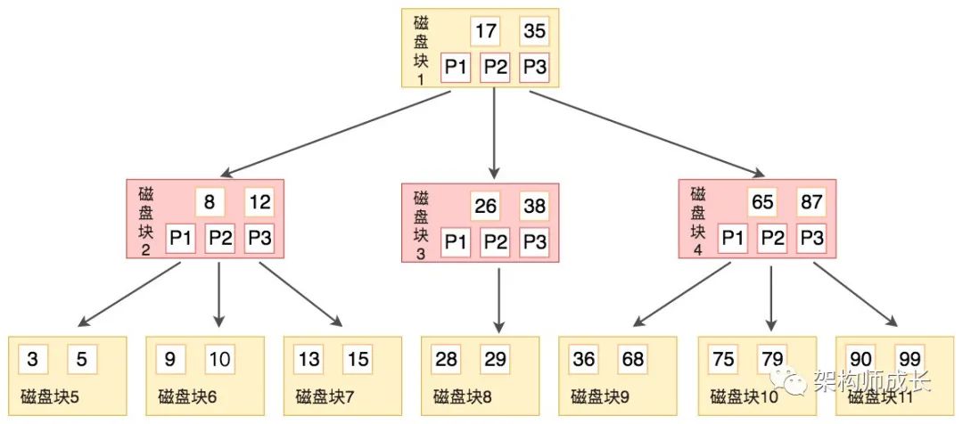 B 树的结构如下图所示: