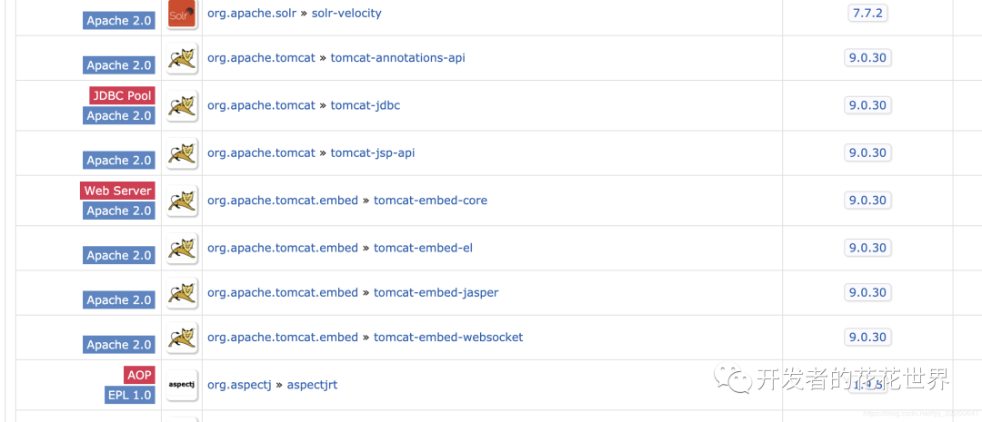 也可以通过mvnrepository,查询上面依赖,找到对应的版本点进去,往下拉会看到Tomcat版本,例如: