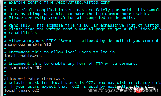 vim /etc/vsftpd/vsftpd.conf# 添加一行配置 allow_writeable_chroot=YES