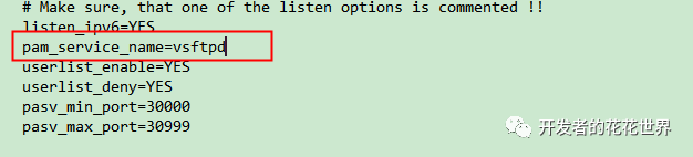 查看是否有这一行 没有的话添加上去 pam_service_name=vsftpd