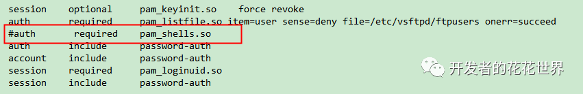 检查 /etc/pam.d/vsftpd 配置文件 PAM 服务名称,这里的设置决定PAM将为vsftpd使用配置文件