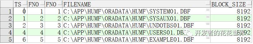 select ts#,file# from v$datafile order by ts# ;select name from v$datafile order by ts# ;select BLOCK_SIZE from v$datafile order by ts# ;