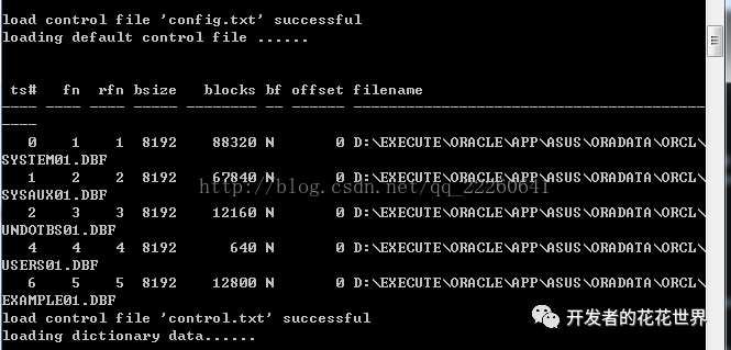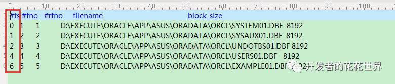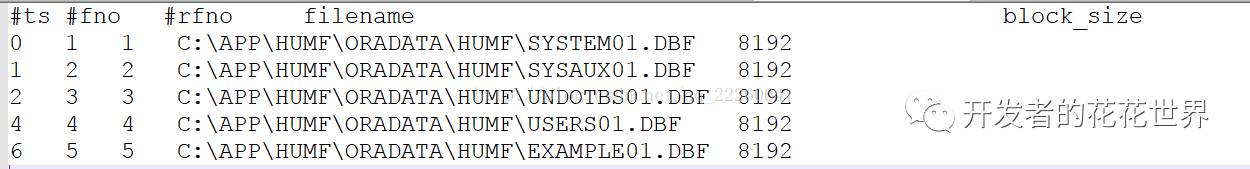 control.txt文件中的数据格式为:表空间号 文件号 相对文件号 文件名 块大小 是否大文件表空间