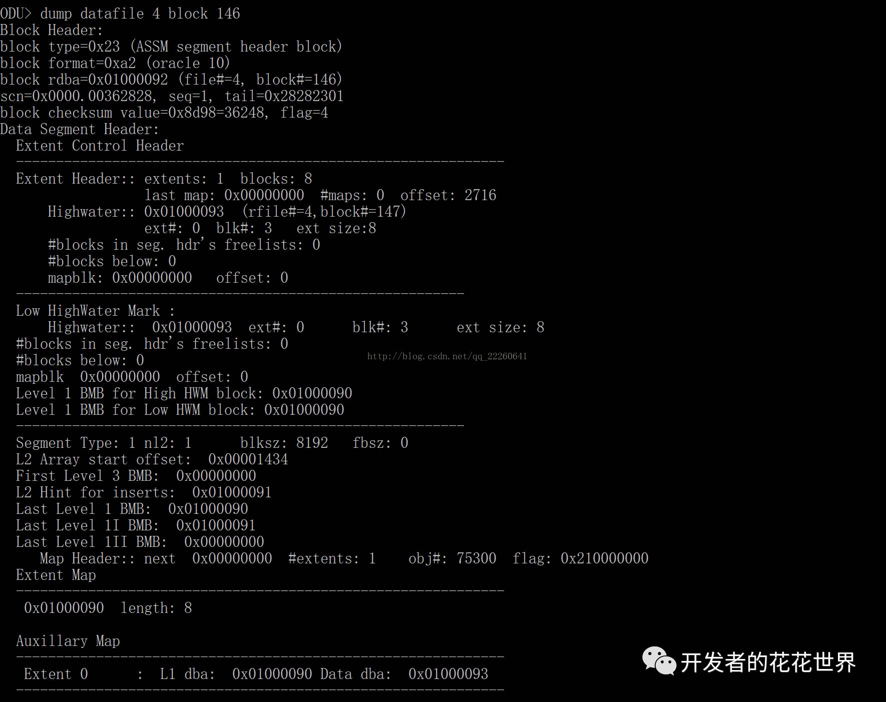dump数据文件数据块,上面的数字看8命令得到的结果