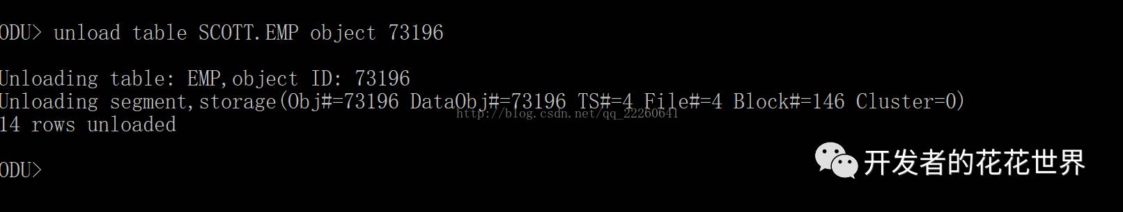 10.ODU> unload table SCOTT.EMP object 73196